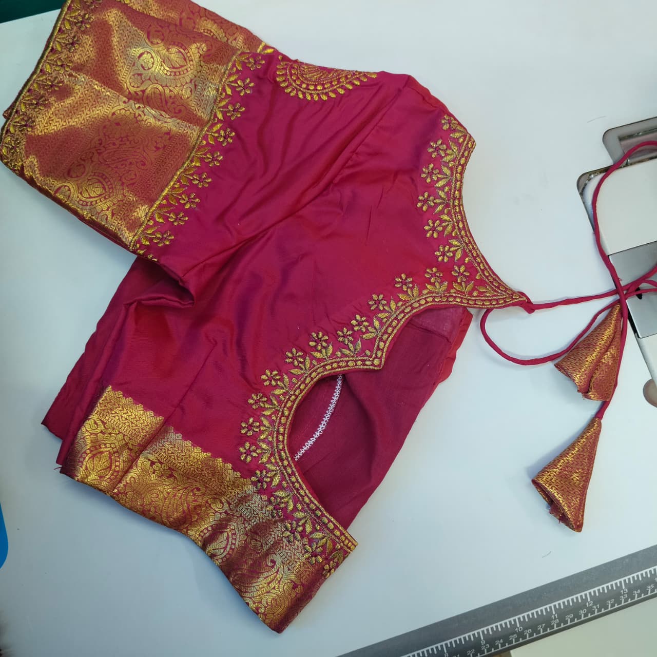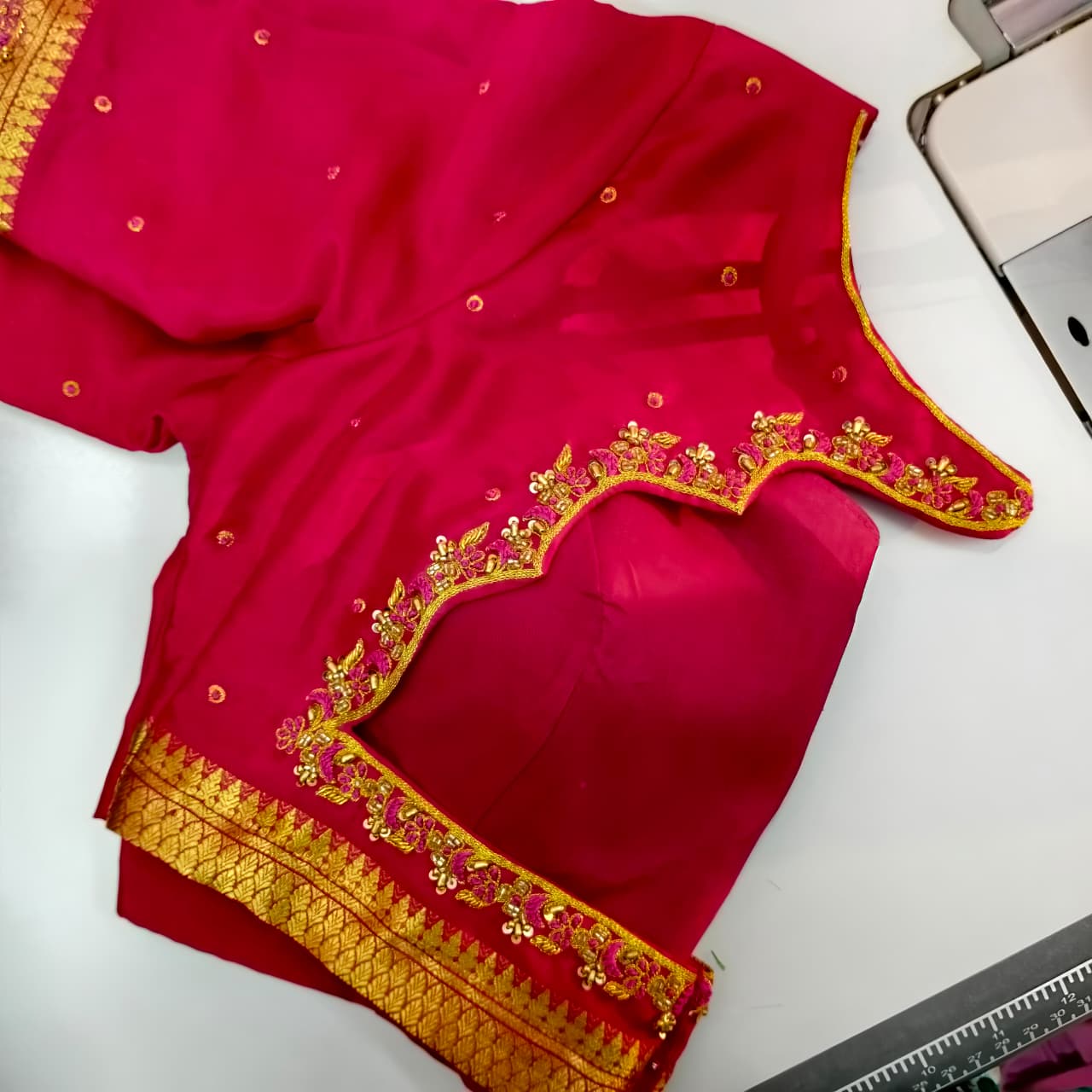 I've been searching for the perfect blouse for my Kanchipuram saree and Rhythm Fashion delivered! The boat neck design with the silk fabric is absolutely stunning. Professional service from start to finish.