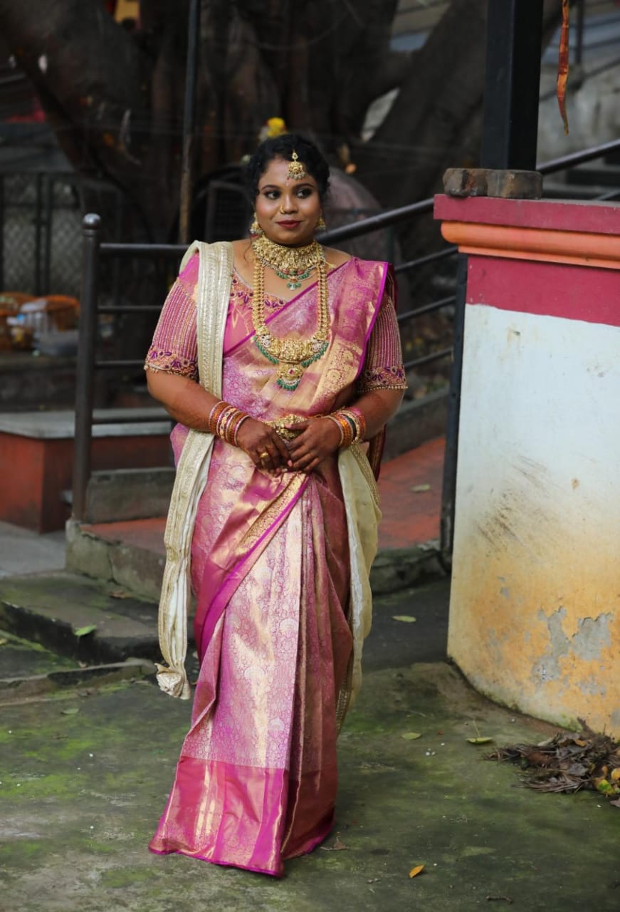 An opulent bridal blouse crafted from rich Banarasi brocade.